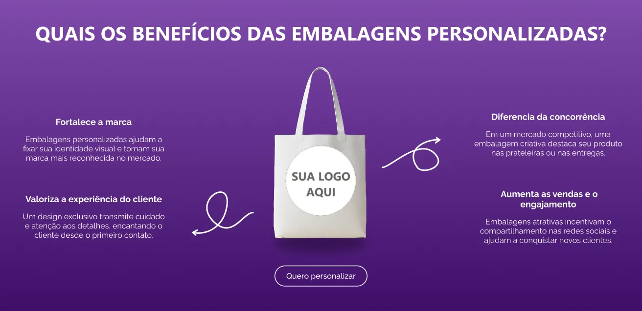 Para personalizar suas embalagens, entre em contato conosco com suas ideias. Nossa equipe irá ajudá-lo a criar o design perfeito. Oferecemos diversas opções de personalização para atender suas necessidades.